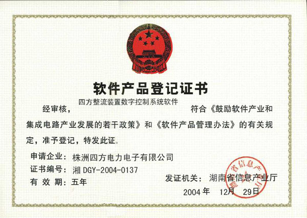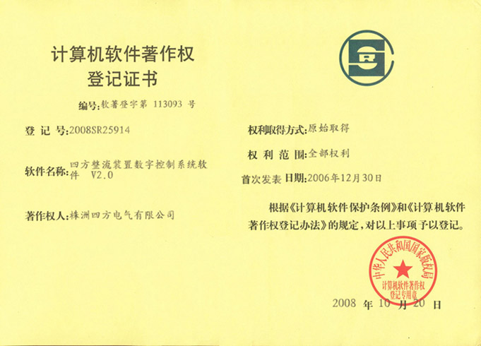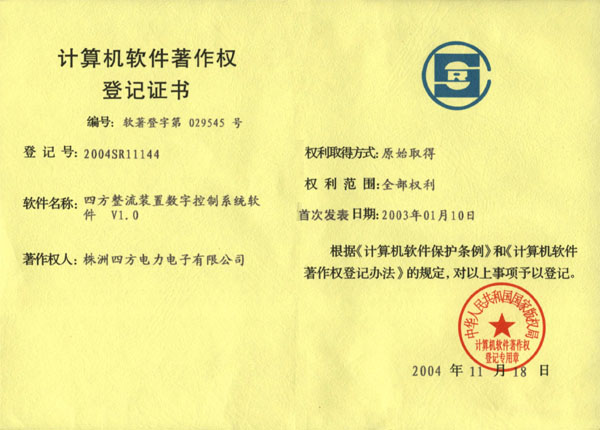 計算機(jī)軟件著作權(quán)登記證書(整流裝置)