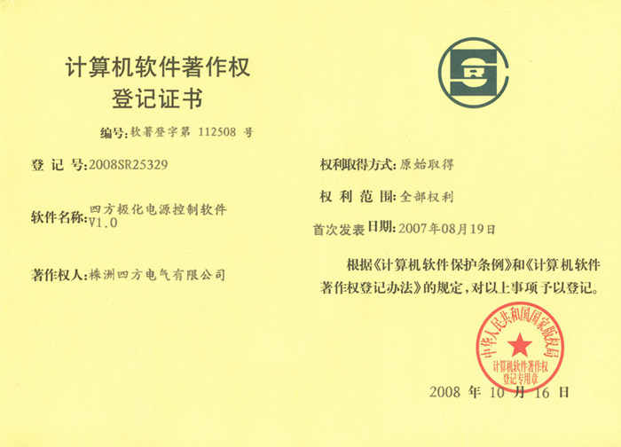 計算機(jī)軟件著作權(quán)登記證書(極化電源)